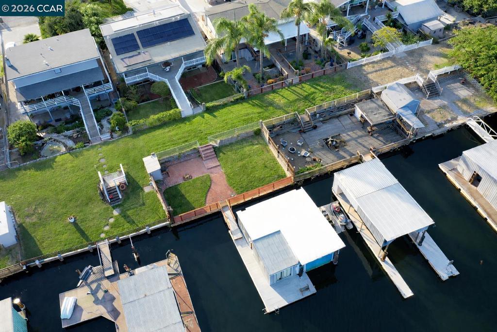 This Delta waterfront retreat is your chance to live where the backyard meets the water. Enjoy wide views across Sandmound Slough to open fields beyond, plus a spacious two story layout with generous living areas, hardwood floors, recessed lighting, and a cozy pellet stove for cool evenings. A slider leads to the covered deck overlooking the water, a natural spot for watching the sunrise with morning coffee, or weekend brunch with family and friends. Downstairs, the outdoor spaces continue with a lower patio, lawn, and mature citrus and fruit trees. The standout bonus is the detached boathouse with kitchenette and living area, ideal for game days, projects, or a relaxed hangout after a day on the water. The enclosed dock with boat lift makes it easy to enjoy boating, fishing, and Delta days anytime. Plenty of parking with a two car garage, two car carport, and RV access. If you have been waiting for a true Delta lifestyle property, this one checks the boxes for fun and function, with room for guests, work from home flexibility, and space for all the toys. Welcome home!