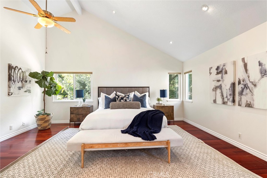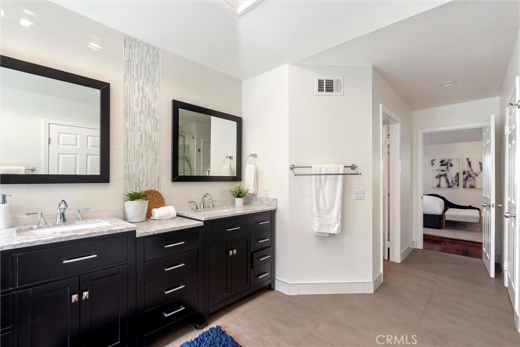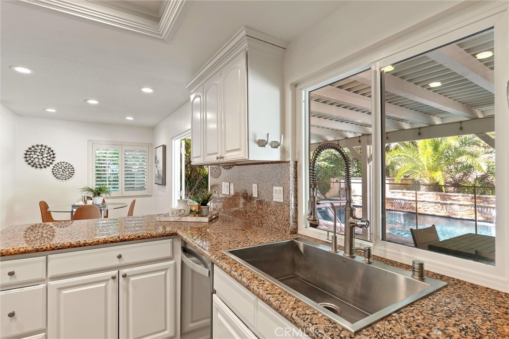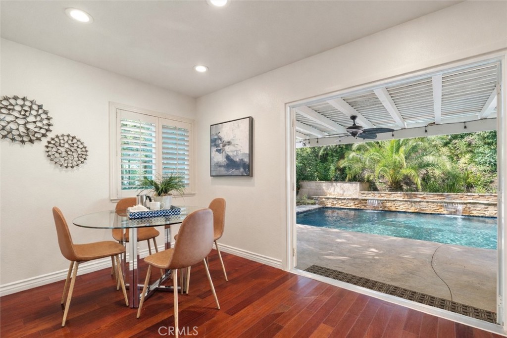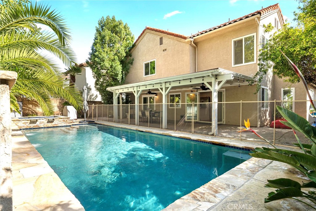 Located within the highly sought-after El Camino Real, Hale, and Pomelo Charter School boundaries, this beautifully maintained residence offers the perfect blend of comfort, style, and indoor-outdoor living. Upon entry, soaring ceilings and abundant natural light set the tone, highlighting a spacious living room anchored by a charming bay window and flowing effortlessly into the formal dining area—ideal for both everyday living and special occasions. A downstairs bedroom paired with a remodeled bathroom provides flexible living options for guests, extended family, or a home office. The thoughtfully updated kitchen overlooks a secluded resort-style backyard, where a sparkling pool, spa, and waterfall features create a serene resort like backdrop for meals enjoyed in the adjacent casual dining space. The expansive family room invites relaxation with a cozy fireplace, wet bar, and French doors that open to a private outdoor retreat designed for entertaining or unwinding in total tranquility. The backyard is a true highlight, featuring a pool, spa, waterfalls, fire pit, and serene landscaping. Custom evening lighting transforms the space into an private yet inviting oasis—perfect for gatherings or quiet nights. Upstairs, the primary suite serves as a peaceful escape with vaulted ceilings and a tastefully remodeled bathroom complete with a soaking tub, custom-tiled shower and a rarely seen private lavatory. Hardwood floors and thoughtful upgrades throughout enhance both the home’s character and functionality. Just steps from a sprawling neighborhood park, this exceptional property offers an luxury lifestyle in one of West Hills’ most desirable settings. Photos are professionally staged.