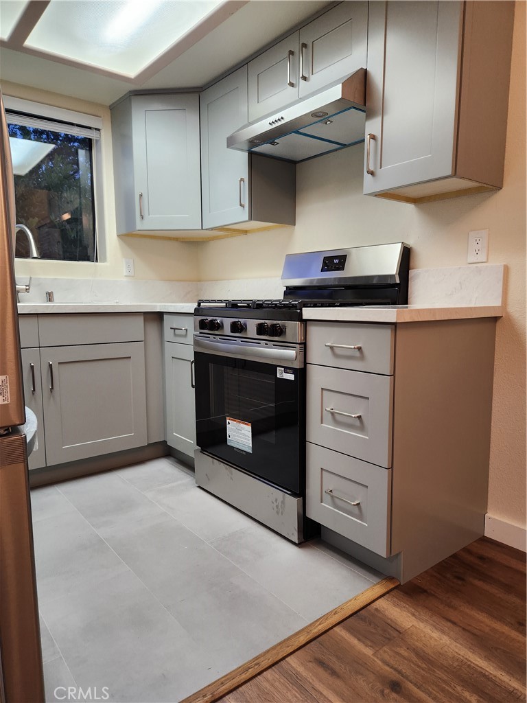 One Bedroom 1 Bath front corner unit on the first floor, facing Doran St. Open floor plan, remodeled, clean, light and bright unit. Brand new gas stove, dishwasher, hood and fridge, main bedroom two side window no common wall sharing with neighbor. Bathroom with new tile flooring, new vanity. Large living room ,recess lighting new laminated wood flooring, Central AC and Heat, fresh paint Each floor has coin operating washer and dryer. underground subterranean parking, easy access to 134 freeway, close to upcoming Erewhon Grocery Market corner of Doran & Glendale Ave